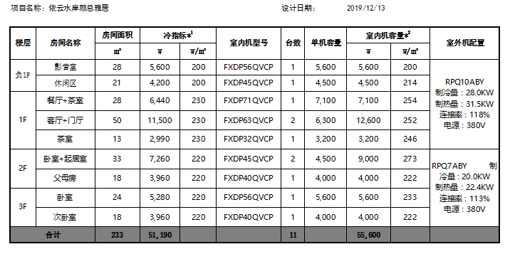 空調系統配置表