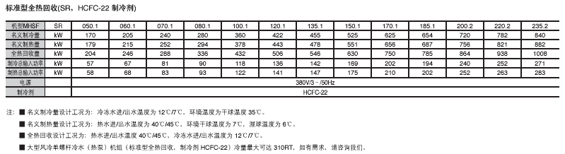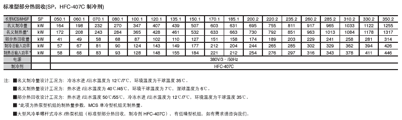 制冷劑:HCFC-22 HFC-407C