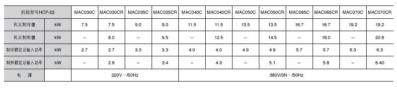 小型風冷冷水/熱泵機組整體系列 MAC-C/MAC-D 點擊放大