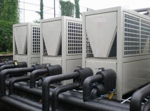 將傳統(tǒng)的氟利昂管路改變?yōu)樗苈罚瑢⑹覂?nèi)外機合并為制冷機組,室內(nèi)機改為風(fēng)機盤管。利用載冷劑水的換熱來實現(xiàn)制冷過程,模塊機由于能夠根據(jù)冷負荷要求自動調(diào)節(jié)啟動機組數(shù)量。